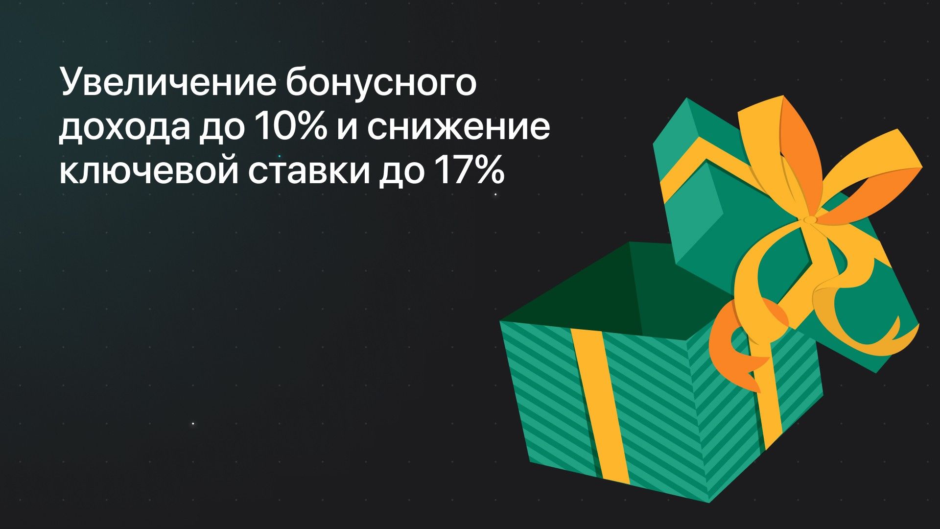 8 апреля Центральный Банк объявил о понижении ключевой ставки до 17%. Чтобы сохранить доходность инвесторов на высоком уровне, мы решили усилить текущую акцию до 10% годовых на сумму пополнения и продлить её до 29 апреля.